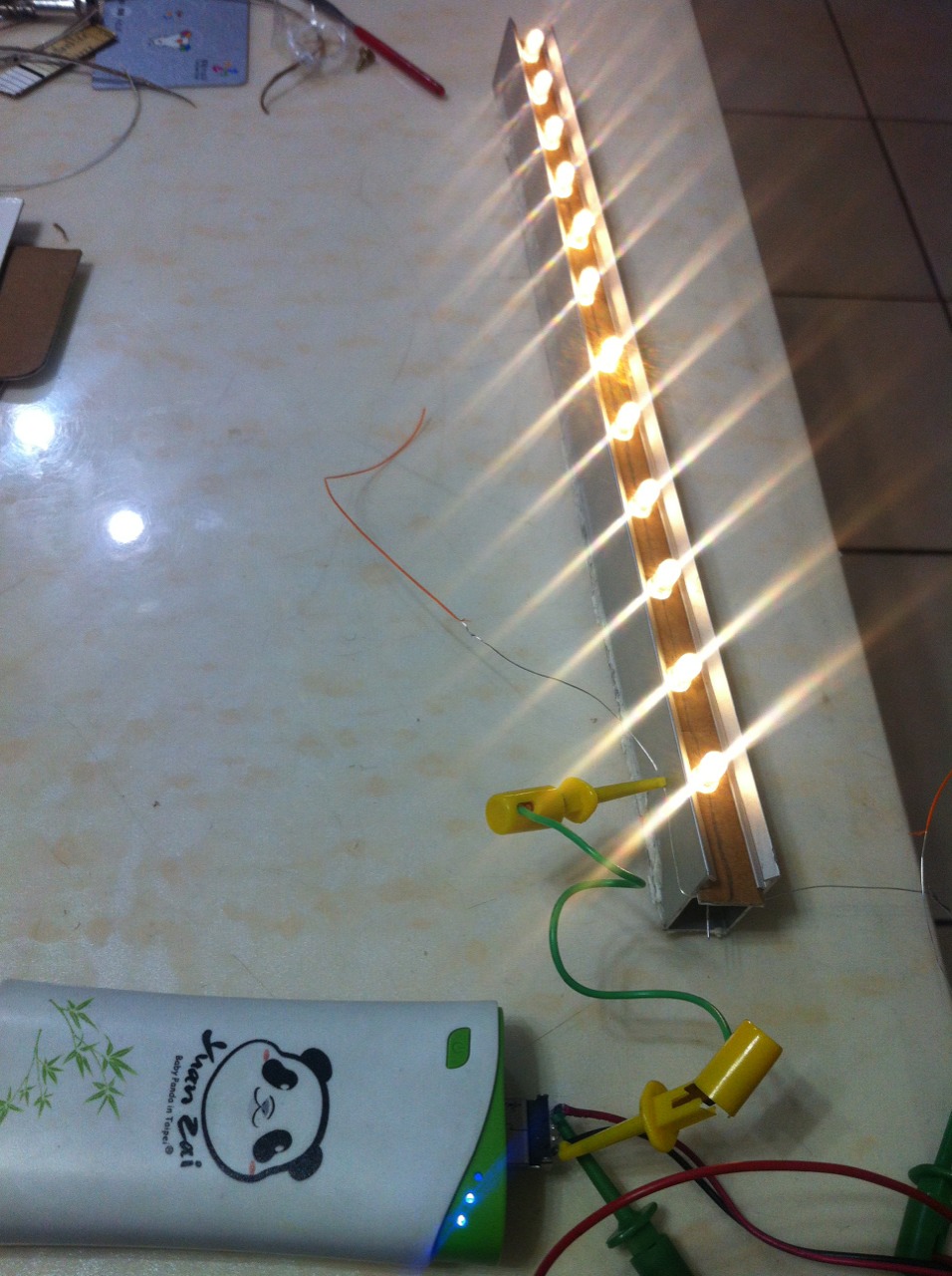 --- title: "Infinity Mirror" tags: hackpad --- # Infinity Mirror > [點此觀看原始內容](https://openlabtaipei.hackpad.tw/zSBWW4amR9h) Infinity Mirror [https://www.youtube.com/watch?v=zKaaYmyNUmQ](https://www.youtube.com/watch?v=zKaaYmyNUmQ) ↑↑↑ 前陣子小弟的FB一直出現Infinity Mirror的影片,所以小弟今天也來試做看看。 =============================================================================== STEP ONE ================================================================================  小弟先跟鴻旗要了一條鋁擠型,用厚紙板當底做了一條用行動電源點亮的LED燈條。 要先有這個燈條的基本概念才能延伸Infinity mirror,整個電路設計的原理大致上如下: 假設行動電源能提供的總電流大概是1.5A~2A,我們主要透過電阻的阻值去限制每一顆LED燈流過的電流大小。如果每一顆LED我們給他流過0.2A的電流,那這個2A的行動電源可能就只能供給10顆並聯的LED燈亮,所以亮度跟LED的顆數是成反比,顆數越多就只能犧牲亮度越不亮。 詳細的計算公式我之後再補上。 ===================================================================================== STEP TWO =====================================================================================    由於小弟是一個不及格的Maker,所以直接去商店買了有外框的鏡子、壓克力展示架跟汽車隔熱紙,希望有朝一日能夠手做木工框,用雷切切自己喜歡的壓克力圖型ㄒ^ㄒ。接下來這個步驟,將汽車隔熱紙貼到壓克力板上,貼的時候的技巧跟貼手機包膜差不多,就是細心。包好之後就得到一塊貼著汽車隔熱紙的壓克力板,只要貼單一面就好了。  ============================================================================ STEP THREE ========================================================================== 最後一個步驟,只要將LED燈條卡在兩者中間就可以完成Infinity mirror的效果。  年節快到了,大家也來做一個吧,把文字加在裡面應該滿有趣的。