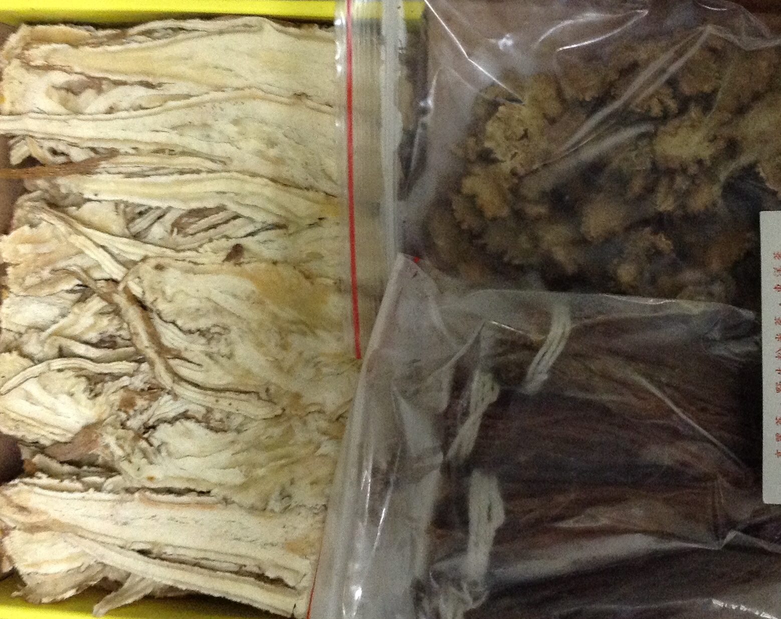 左邊是酒製當歸, 右上 川芎, 右下人蔘鬚