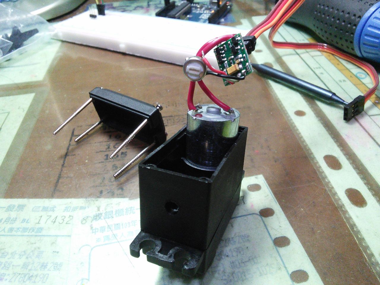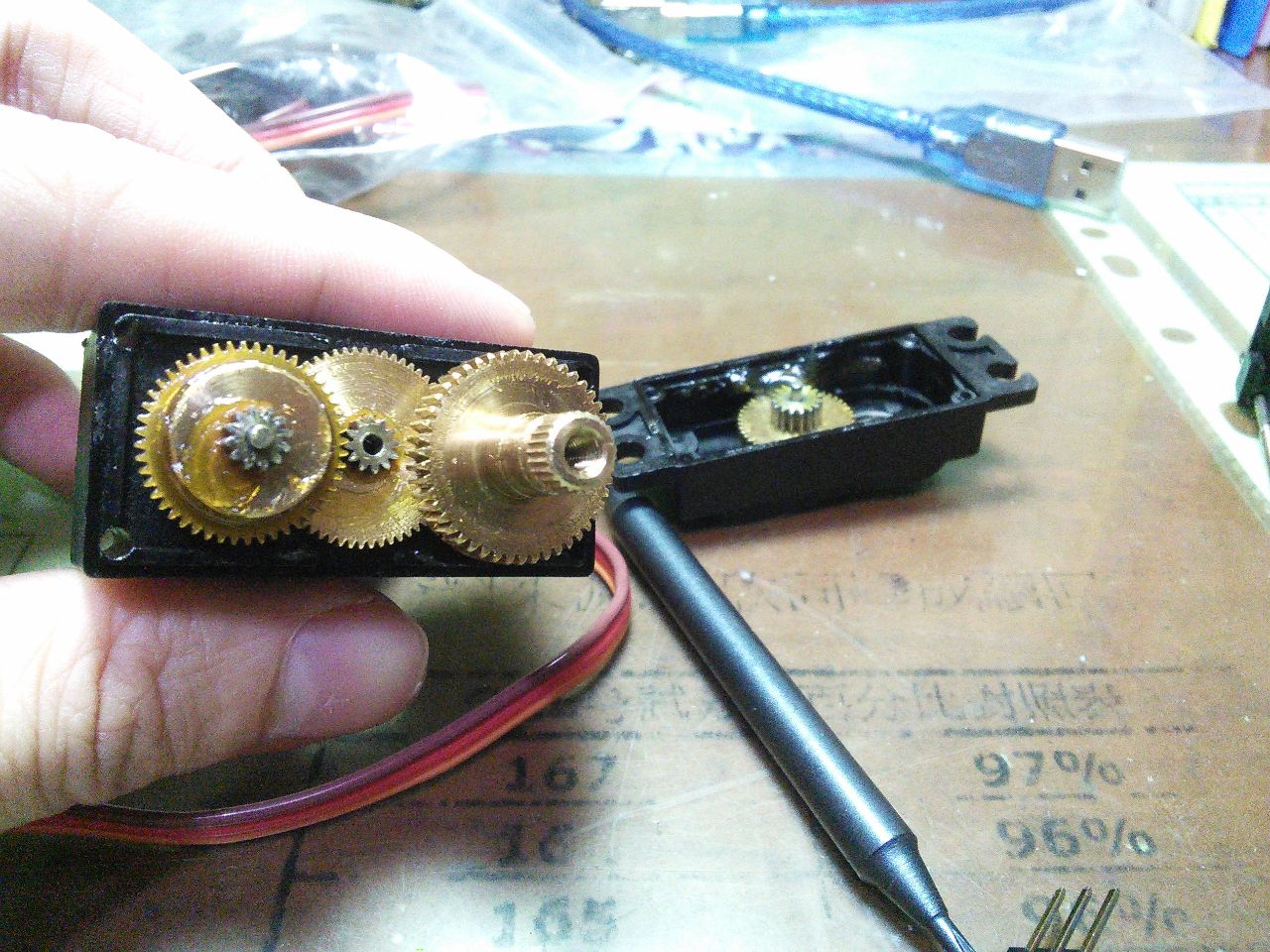 --- title: "servo" tags: hackpad --- # servo > [點此觀看原始內容](https://openlabtaipei.hackpad.tw/LSes3Rnjfzl) servo  淘寶買的MG995拆開圖  齒輪組由前面拆開,內部電路圖有電路板跟可變電阻 改機前的伺服馬達為兩顆電阻值相同的電阻串接,中間有V接點。 改機後上中下改由可變電阻(VR)接上。 l 問題一:電路板不動 在直流馬達的兩極並聯雙色LED,看啟動時LED是否亮起。若無則表示電路板GG。 l 問題二:極限轉速不同 在PWM範圍的最大最小值轉速不同,可能是齒輪組的問題!? [註] 1.全銅齒不好, 曾有因磨擦熱膨脹, 齒間距變不足咬死現象。應該要有一片齒輪是塑膠或者是鋁製齒輪,全銅齒是玩模型飛機發現咬死之後淘汰的。 2\. 原圖的VR是B5K,會回彈,不好,可以改用一般常見的VR或者是下圖這種。  3. 推MG90S自己改