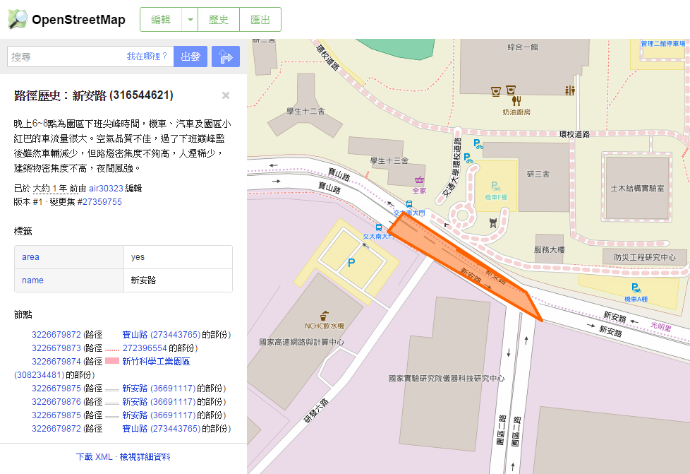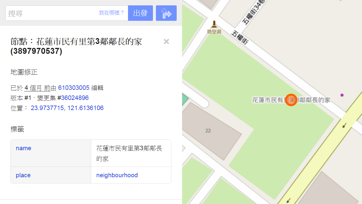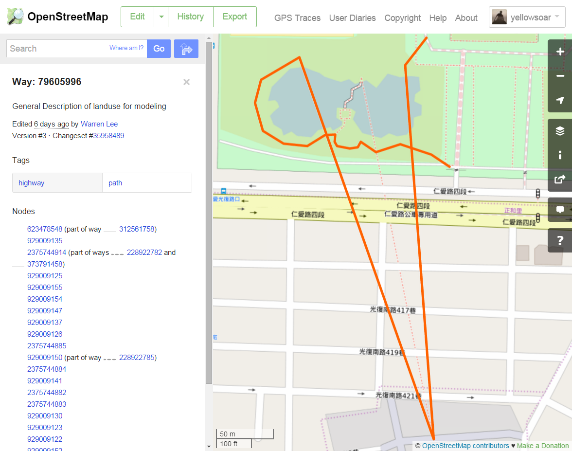 --- title: "紀錄與搜奇" tags: community,hackpad --- # 紀錄與搜奇 > [點此觀看原始內容](https://osmtw.hackpad.tw/re0xSIM0OEO) 紀錄與搜奇 ## 千奇百怪 無意義的編輯 [http://www.openstreetmap.org/way/296604776](http://www.openstreetmap.org/way/296604776) [http://www.openstreetmap.org/way/296604691](http://www.openstreetmap.org/way/296604691) [http://www.openstreetmap.org/way/296604503](http://www.openstreetmap.org/way/296604503) [http://www.openstreetmap.org/way/296604327](http://www.openstreetmap.org/way/296604327) [http://www.openstreetmap.org/way/296604341](http://www.openstreetmap.org/way/296604341) [http://www.openstreetmap.org/way/296604380](http://www.openstreetmap.org/way/296604380)  頂新大學 [http://www.openstreetmap.org/node/2749993123/history](http://www.openstreetmap.org/node/2749993123/history) 我家^0^ [http://www.openstreetmap.org/node/1545283960/history](http://www.openstreetmap.org/node/1545283960/history) 花蓮市民有里1鄰鄰長的家 [https://www.openstreetmap.org/node/3896486597](https://www.openstreetmap.org/node/3896486597)  花蓮市民有里第3鄰鄰長的家 [https://www.openstreetmap.org/node/3897970537](https://www.openstreetmap.org/node/3897970537)  > 不該用 neighbourhood 啦 不過好像可以適用 office=government > [name=李昕迪] 北科大吃飯路線 [http://www.openstreetmap.org/way/93305730/history](http://www.openstreetmap.org/way/93305730/history) 租賃標示 [https://www.openstreetmap.org/way/193250111#map=19/23.88800/121.54922](https://www.openstreetmap.org/way/193250111#map=19/23.88800/121.54922)  東華情侶散步路線 [https://www.openstreetmap.org/node/3436474958#map=18/23.90276/121.53985](https://www.openstreetmap.org/node/3436474958#map=18/23.90276/121.53985) [https://www.openstreetmap.org/way/336801347](https://www.openstreetmap.org/way/336801347)   > 去死去死團表示 > [name=李昕迪] > 認真說可以標走路路徑關係,然後標network=lwn > [name=Supaplex] 面積未標 area [http://www.openstreetmap.org/changeset/34239378](http://www.openstreetmap.org/changeset/34239378) landuse 命名高級住宅區 [https://www.openstreetmap.org/way/305805320](https://www.openstreetmap.org/way/305805320)  吳政緯帝國 [http://www.openstreetmap.org/way/344666093/history](http://www.openstreetmap.org/way/344666093/history) 討論內容涉及「吳政緯帝國」 [http://www.openstreetmap.org/changeset/31087250](http://www.openstreetmap.org/changeset/31087250) 中國人湖 [https://www.openstreetmap.org/way/374283605/history](https://www.openstreetmap.org/way/374283605/history)  > 應該叫烏油窟潟湖 > [name=Supaplex] 毒品常用交易地點(別亂去) [http://www.openstreetmap.org/changeset/32512201](http://www.openstreetmap.org/changeset/32512201) .png) 傳說中的治癒之湖(跳進去能治療任何疾病 [http://www.openstreetmap.org/changeset/32512111](http://www.openstreetmap.org/changeset/32512111)  鬼湖(有水怪) [http://www.openstreetmap.org/changeset/32512001](http://www.openstreetmap.org/changeset/32512001)  智盈咖啡館(在空軍基地內) [http://www.openstreetmap.org/node/3514132501#map=17/24.81700/120.93971&layers=N](http://www.openstreetmap.org/node/3514132501#map=17/24.81700/120.93971&layers=N)  把 OSM 當成介紹店家的食記 [https://www.openstreetmap.org/node/4106765229/history](https://www.openstreetmap.org/node/4106765229/history) [https://www.openstreetmap.org/node/4074685874](https://www.openstreetmap.org/node/4074685874) ## 地方的新手需要教學 重複繪製 [https://www.openstreetmap.org/changeset/35787232](https://www.openstreetmap.org/changeset/35787232) 新手 [http://www.openstreetmap.org/way/217686006](http://www.openstreetmap.org/way/217686006) [http://www.openstreetmap.org/node/3785975626](http://www.openstreetmap.org/node/3785975626)   彰化火車站陣法 天殺的 [http://www.openstreetmap.org/changeset/14326580](http://www.openstreetmap.org/changeset/14326580) [http://imgur.com/VHrwb](http://imgur.com/VHrwb) 花蓮外海塗鴉 [http://www.openstreetmap.org/changeset/8664182](http://www.openstreetmap.org/changeset/8664182)  [http://mcdlee.github.io/20141121_NCKU/pics/hl.png](http://mcdlee.github.io/20141121_NCKU/pics/hl.png) 失去整個基隆 [http://www.openstreetmap.org/changeset/8227858](http://www.openstreetmap.org/changeset/8227858) [https://lists.openstreetmap.org/pipermail/talk-tw/2011-June/000119.html](https://lists.openstreetmap.org/pipermail/talk-tw/2011-June/000119.html)  name=投、卡2用公用電話 [https://www.openstreetmap.org/node/3749322160](https://www.openstreetmap.org/node/3749322160)  ## 將建築當土地利用使用 [花蓮玉里](https://www.openstreetmap.org/#map=15/23.3364/121.3250)[https://www.openstreetmap.org/](https://www.openstreetmap.org/#map=15/23.3364/121.3250)[#map](https://osmtw.hackpad.tw/ep/search/?q=%23map&via=re0xSIM0OEO)[=15/23.3364/121.3250](https://www.openstreetmap.org/#map=15/23.3364/121.3250) 拯救一半 [https://www.openstreetmap.org/changeset/34995650](https://www.openstreetmap.org/changeset/34995650)  ## 忽略已存在內容 ## 測試 [https://www.openstreetmap.org/user/hsu993/history#map=2/66.6/60.5](https://www.openstreetmap.org/user/hsu993/history#map=2/66.6/60.5)  ## Note 當 local wiki 寫 [http://www.openstreetmap.org/note/283887](http://www.openstreetmap.org/note/283887) [http://www.openstreetmap.org/note/102639](http://www.openstreetmap.org/note/102639) 洩漏軍事用途 [http://www.openstreetmap.org/note/28068](http://www.openstreetmap.org/note/280686)[6](http://www.openstreetmap.org/note/280686) [http://www.openstreetmap.org/note/280681](http://www.openstreetmap.org/note/280681) [http://www.openstreetmap.org/note/280678](http://www.openstreetmap.org/note/280678) 誤關 [http://www.openstreetmap.org/note/221309](http://www.openstreetmap.org/note/221309) [http://www.openstreetmap.org/note/318767](http://www.openstreetmap.org/note/318767) 來自臉書 [http://www.openstreetmap.o