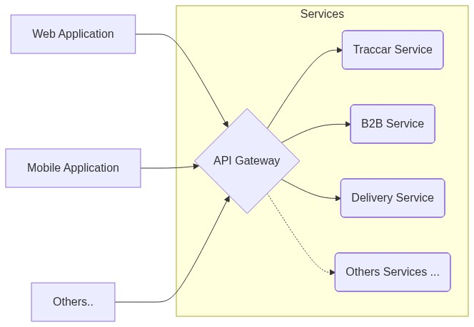[](https://mermaid-js.github.io/mermaid-live-editor/#/edit/eyJjb2RlIjoiZ3JhcGggTFJcbiAgICBXQVtXZWIgQXBwbGljYXRpb25dIC0tPiBBR3tBUEkgR2F0ZXdheX1cbiAgICBNQVtNb2JpbGUgQXBwbGljYXRpb25dIC0tPiBBR1xuICAgIE9UW090aGVycy4uXSAtLT4gQUdcbiAgICAgIHN1YmdyYXBoIFNlcnZpY2VzXG4gICAgICAgIEFHIC0tPiBUQyhUcmFjY2FyIFNlcnZpY2UpIFxuICAgICAgICBBRyAtLT4gQjJCKEIyQiBTZXJ2aWNlKVxuICAgICAgICBBRyAtLT4gREwoRGVsaXZlcnkgU2VydmljZSlcbiAgICAgICAgQUcgLS4tPiBPVFMoT3RoZXJzIFNlcnZpY2VzIC4uLilcbiAgICAgIGVuZCIsIm1lcm1haWQiOnsidGhlbWUiOiJkZWZhdWx0IiwidGhlbWVWYXJpYWJsZXMiOnsiYmFja2dyb3VuZCI6IndoaXRlIiwicHJpbWFyeUNvbG9yIjoiI0VDRUNGRiIsInNlY29uZGFyeUNvbG9yIjoiI2ZmZmZkZSIsInRlcnRpYXJ5Q29sb3IiOiJoc2woODAsIDEwMCUsIDk2LjI3NDUwOTgwMzklKSIsInByaW1hcnlCb3JkZXJDb2xvciI6ImhzbCgyNDAsIDYwJSwgODYuMjc0NTA5ODAzOSUpIiwic2Vjb25kYXJ5Qm9yZGVyQ29sb3IiOiJoc2woNjAsIDYwJSwgODMuNTI5NDExNzY0NyUpIiwidGVydGlhcnlCb3JkZXJDb2xvciI6ImhzbCg4MCwgNjAlLCA4Ni4yNzQ1MDk4MDM5JSkiLCJwcmltYXJ5VGV4dENvbG9yIjoiIzEzMTMwMCIsInNlY29uZGFyeVRleHRDb2xvciI6IiMwMDAwMjEiLCJ0ZXJ0aWFyeVRleHRDb2xvciI6InJnYig5LjUwMDAwMDAwMDEsIDkuNTAwMDAwMDAwMSwgOS41MDAwMDAwMDAxKSIsImxpbmVDb2xvciI6IiMzMzMzMzMiLCJ0ZXh0Q29sb3IiOiIjMzMzIiwibWFpbkJrZyI6IiNFQ0VDRkYiLCJzZWNvbmRCa2ciOiIjZmZmZmRlIiwiYm9yZGVyMSI6IiM5MzcwREIiLCJib3JkZXIyIjoiI2FhYWEzMyIsImFycm93aGVhZENvbG9yIjoiIzMzMzMzMyIsImZvbnRGYW1pbHkiOiJcInRyZWJ1Y2hldCBtc1wiLCB2ZXJkYW5hLCBhcmlhbCIsImZvbnRTaXplIjoiMTZweCIsImxhYmVsQmFja2dyb3VuZCI6IiNlOGU4ZTgiLCJub2RlQmtnIjoiI0VDRUNGRiIsIm5vZGVCb3JkZXIiOiIjOTM3MERCIiwiY2x1c3RlckJrZyI6IiNmZmZmZGUiLCJjbHVzdGVyQm9yZGVyIjoiI2FhYWEzMyIsImRlZmF1bHRMaW5rQ29sb3IiOiIjMzMzMzMzIiwidGl0bGVDb2xvciI6IiMzMzMiLCJlZGdlTGFiZWxCYWNrZ3JvdW5kIjoiI2U4ZThlOCIsImFjdG9yQm9yZGVyIjoiaHNsKDI1OS42MjYxNjgyMjQzLCA1OS43NzY1MzYzMTI4JSwgODcuOTAxOTYwNzg0MyUpIiwiYWN0b3JCa2ciOiIjRUNFQ0ZGIiwiYWN0b3JUZXh0Q29sb3IiOiJibGFjayIsImFjdG9yTGluZUNvbG9yIjoiZ3JleSIsInNpZ25hbENvbG9yIjoiIzMzMyIsInNpZ25hbFRleHRDb2xvciI6IiMzMzMiLCJsYWJlbEJveEJrZ0NvbG9yIjoiI0VDRUNGRiIsImxhYmVsQm94Qm9yZGVyQ29sb3IiOiJoc2woMjU5LjYyNjE2ODIyNDMsIDU5Ljc3NjUzNjMxMjglLCA4Ny45MDE5NjA3ODQzJSkiLCJsYWJlbFRleHRDb2xvciI6ImJsYWNrIiwibG9vcFRleHRDb2xvciI6ImJsYWNrIiwibm90ZUJvcmRlckNvbG9yIjoiI2FhYWEzMyIsIm5vdGVCa2dDb2xvciI6IiNmZmY1YWQiLCJub3RlVGV4dENvbG9yIjoiYmxhY2siLCJhY3RpdmF0aW9uQm9yZGVyQ29sb3IiOiIjNjY2IiwiYWN0aXZhdGlvbkJrZ0NvbG9yIjoiI2Y0ZjRmNCIsInNlcXVlbmNlTnVtYmVyQ29sb3IiOiJ3aGl0ZSIsInNlY3Rpb25Ca2dDb2xvciI6InJnYmEoMTAyLCAxMDIsIDI1NSwgMC40OSkiLCJhbHRTZWN0aW9uQmtnQ29sb3IiOiJ3aGl0ZSIsInNlY3Rpb25Ca2dDb2xvcjIiOiIjZmZmNDAwIiwidGFza0JvcmRlckNvbG9yIjoiIzUzNGZiYyIsInRhc2tCa2dDb2xvciI6IiM4YTkwZGQiLCJ0YXNrVGV4dExpZ2h0Q29sb3IiOiJ3aGl0ZSIsInRhc2tUZXh0Q29sb3IiOiJ3aGl0ZSIsInRhc2tUZXh0RGFya0NvbG9yIjoiYmxhY2siLCJ0YXNrVGV4dE91dHNpZGVDb2xvciI6ImJsYWNrIiwidGFza1RleHRDbGlja2FibGVDb2xvciI6IiMwMDMxNjMiLCJhY3RpdmVUYXNrQm9yZGVyQ29sb3IiOiIjNTM0ZmJjIiwiYWN0aXZlVGFza0JrZ0NvbG9yIjoiI2JmYzdmZiIsImdyaWRDb2xvciI6ImxpZ2h0Z3JleSIsImRvbmVUYXNrQmtnQ29sb3IiOiJsaWdodGdyZXkiLCJkb25lVGFza0JvcmRlckNvbG9yIjoiZ3JleSIsImNyaXRCb3JkZXJDb2xvciI6IiNmZjg4ODgiLCJjcml0QmtnQ29sb3IiOiJyZWQiLCJ0b2RheUxpbmVDb2xvciI6InJlZCIsImxhYmVsQ29sb3IiOiJibGFjayIsImVycm9yQmtnQ29sb3IiOiIjNTUyMjIyIiwiZXJyb3JUZXh0Q29sb3IiOiIjNTUyMjIyIiwiY2xhc3NUZXh0IjoiIzEzMTMwMCIsImZpbGxUeXBlMCI6IiNFQ0VDRkYiLCJmaWxsVHlwZTEiOiIjZmZmZmRlIiwiZmlsbFR5cGUyIjoiaHNsKDMwNCwgMTAwJSwgOTYuMjc0NTA5ODAzOSUpIiwiZmlsbFR5cGUzIjoiaHNsKDEyNCwgMTAwJSwgOTMuNTI5NDExNzY0NyUpIiwiZmlsbFR5cGU0IjoiaHNsKDE3NiwgMTAwJSwgOTYuMjc0NTA5ODAzOSUpIiwiZmlsbFR5cGU1IjoiaHNsKC00LCAxMDAlLCA5My41Mjk0MTE3NjQ3JSkiLCJmaWxsVHlwZTYiOiJoc2woOCwgMTAwJSwgOTYuMjc0NTA5ODAzOSUpIiwiZmlsbFR5cGU3IjoiaHNsKDE4OCwgMTAwJSwgOTMuNTI5NDExNzY0NyUpIn19LCJ1cGRhdGVFZGl0b3IiOmZhbHNlfQ)