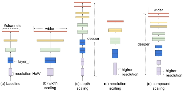 In order to combat this the author proposed a scalling technique which uses a compound coefficient ɸ to uniformly scale a networks: width, depth and resolution: