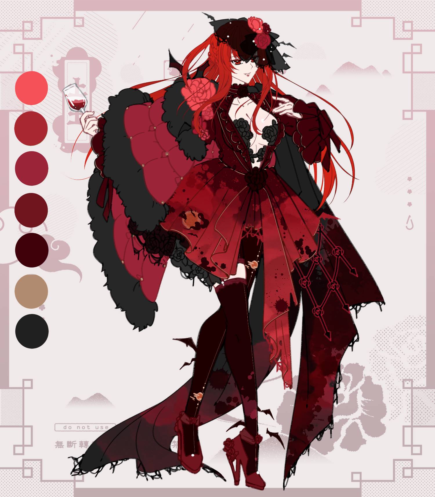# 紅鳥小姐 屬性: 魔女、瘋女人、歌姬、憤怒鳥(?)  蒼染  鵝鵝 外表設定 血紅色的長髮與雙眼,身材高挑豐滿,穿著為性感歌德風,畫著紅黑色系的濃妝,。 頭髮沒有分邊,瀏海是整片的但是可以依需求撥開(只要不要撥成中分或是旁分就好) 個性潑辣殘暴,有SM女王屬性。 為愛瘋狂,拋棄原本的名字與身分成為無名的魔女(紅鳥其實是代號),作為都市傳說般的暗黑歌姬在地下酒吧獻唱,擁有甜美的嗓音,歌聲卻會讓人發狂。 雖然看起來比較成熟但其實原本設定是畫著濃妝的少女 樂團 Æon obscuritatis ,擔任主唱與KEYBORD ## 全身圖  苦瓜惡魔BAK  五分滿水缸 # 服裝風格 平常穿著哥德風洋裝,喜歡紅黑配色的馬甲 舞台上則是紅色或黑色系的秀場禮服  威廉斯先生 (如需分解/背面圖以私噗聯繫提供)  土土  哈尼 節與背面皆可自行解釋,在不更動原設的情況下增加小配件or換髮型也可以,不要過度延伸或更改主體設計 CP雙人套裝  一個獄 免費服設  https://www.plurk.com/p/oxfi9w  蘿蔔 / zenkixd 服裝授權範圍: 【可以】 委託、轉蛋、自繪、夢向、OC都可以 歡迎放入衣櫃,改色調色、增減配件 沒畫到的地方可自由發揮 【禁止】任何形式的商用、轉售、AI使用 在原圖上修改、自作發言、以此延伸設計其他衣服