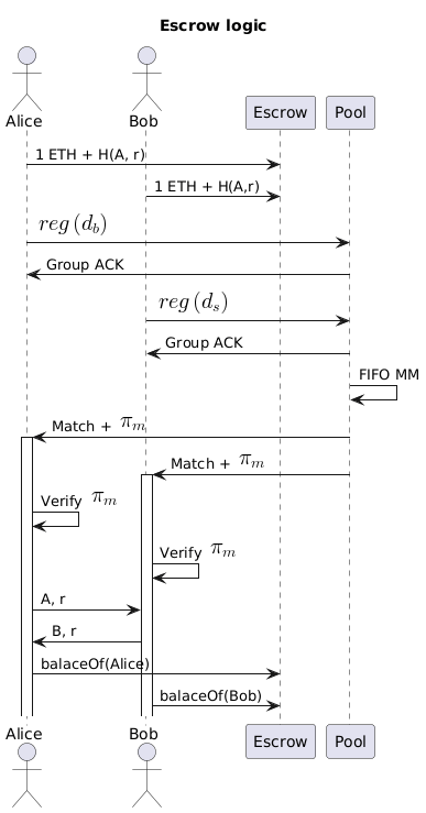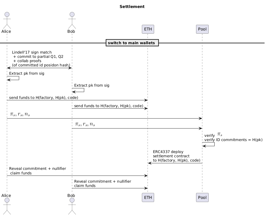 - Alice and Bob cannot learn each others order sizes prior settlement