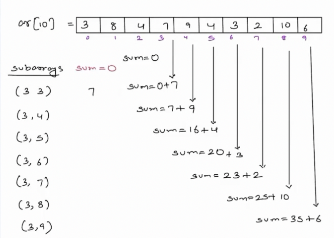**Question -** Given an array arr[N], print the sum of all subarrays starting at 3rd index.