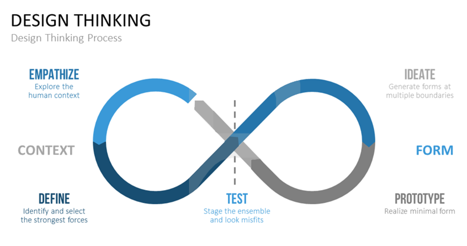 Recordemos que el proceso de Design Thinking es **ITERATIVO** y nos encontraremos yendo y viniendo entre las diferentes etapas a medida que trabajamos en el problema y diseñamos la solución.