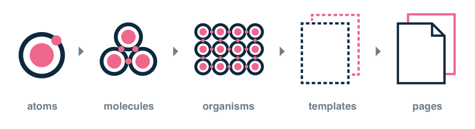 Atomic Design, introduces a methodology for creating scalable systems and reusable components, instead of the limited "pages" metaphor inherited from the early days of the web. It is also a methodology for creating design systems. There are five distinct levels in *atomic design*: