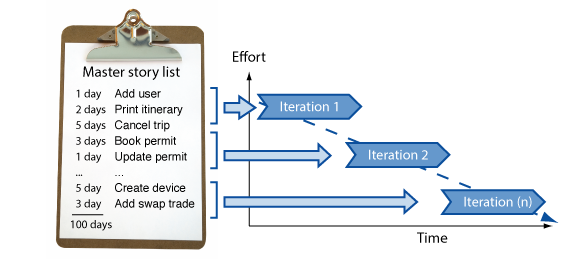 El desarrollo iterativo significa comenzar con algo realmente simple y agregarlo gradualmente con el tiempo. Significa evolucionar la arquitectura, aceptar que sus requisitos van a cambiar y **perfeccionar y ajustar continuamente su producto sobre la marcha**.