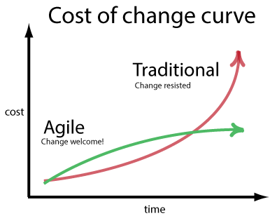 Tradicionalmente, se ha evitado el cambio en los proyectos debido a su alto costo percibido al finalizar el mismo. Agile desafía esta noción y cree que el costo del cambio puede ser relativamente bajo.