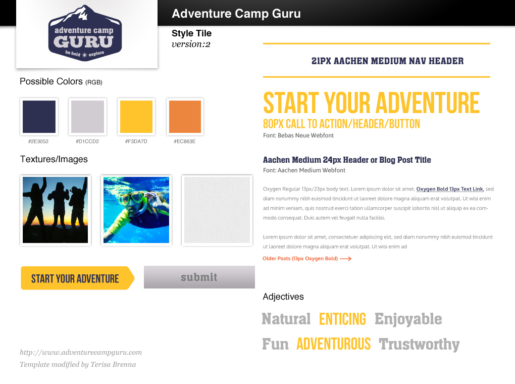 The style tile will aid in an easier adopted design direction for the project using a combination of textures, icons, logos, and content containers.