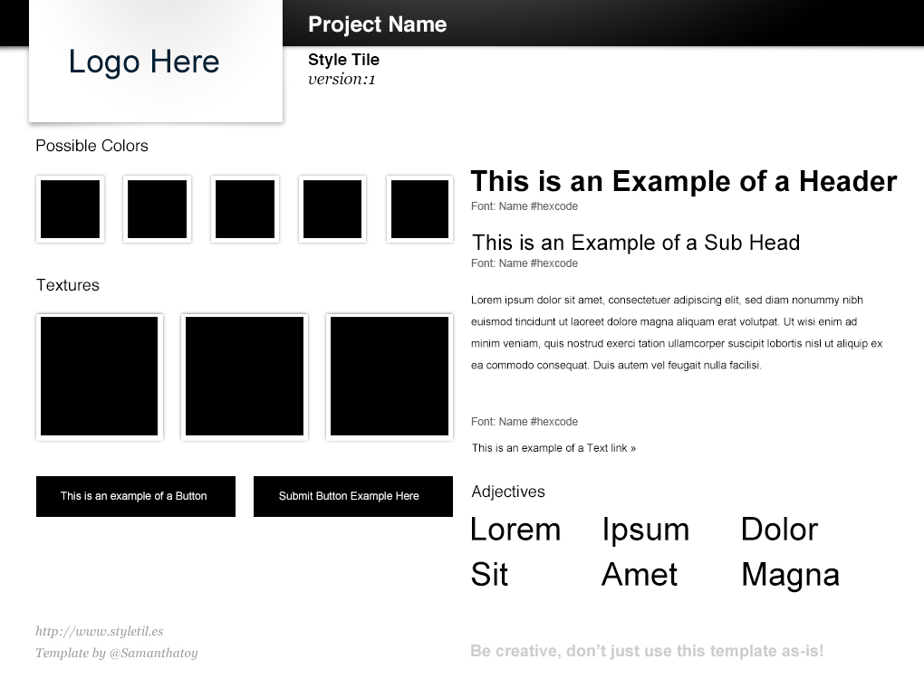 > What makes a style tile unique from other tools is that it is specifically a method for establishing a visual vocabulary between the designer and the client, rather than setting a ‘mood’ or defining elements that will ultimately be included in a full layout.