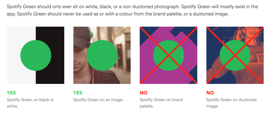 Colors are the most apparent style property. You should have a primary brand color, secondary brand color, and any other colors used in the user interface. Also, include an explanation of the hierarchy and appropriate usage.