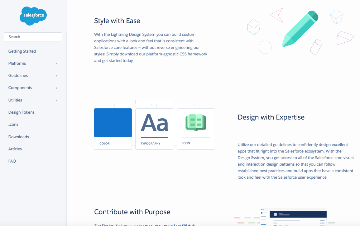 Salesforce's Style Guide is an example of an advanced guide with a range of resources for designers and developers, which includes: