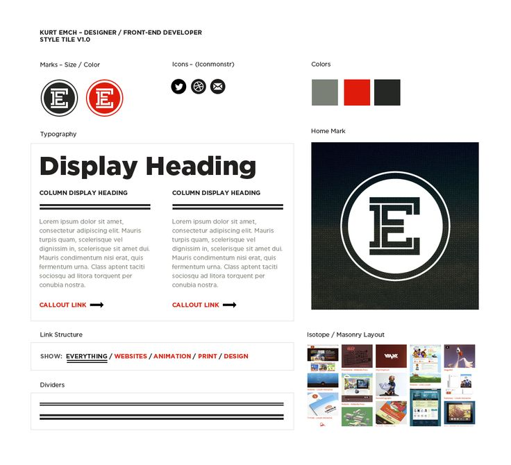 Style Tiles can be laid out however you want, but they should include the core elements of your visual design: