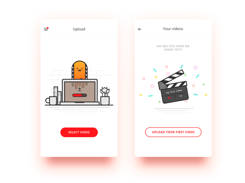The blank/empty states refer to screens without any data in it. This will be the first impression your user will have of the site or app. Normally, it would be shown only one time.