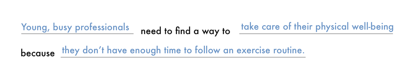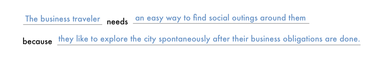En el siguiente ejemplo, el equipo de investigación podría haber descubierto varias necesidades que tienen las personas que viajan por negocios, pero decidió limitar su enfoque a lo que creen que es el punto débil más importante.