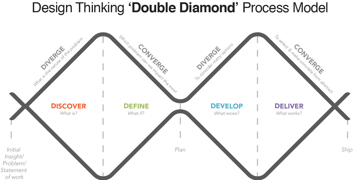 Si bien las fases **de Empatizar & Descubrir** se trata de diverger para comprender cuál es la naturaleza del problema, la etapa **DEFINIR** consiste en hacer converger nuestros hallazgos para darle dirección al proyecto.