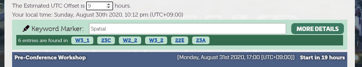 * When you enter a keyword or author of interest, the appropriate session is listed. Then click on the session ID to scroll to that session.