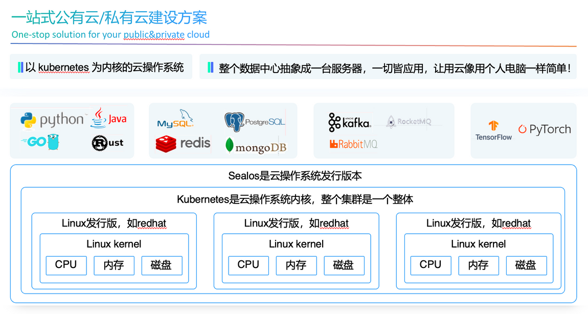 # 使用 Sealos 构建低成本、高效能的私有云 这个时候谈论私有云似乎有点反直觉?大部分人认知不是上云是大趋势嘛?我也比较认可上云,不过私有云也是云,今天给大家带来一个新的选择 —— 用云,装个 sealos 就够了。 看看我们怎么做到更低的成本,更高的稳定性和性能的。 PS:我们从不脱离场景谈优势,不同场景选不同的云肯定是硬道理。 ## 为什么要建设私有云  - 大部分是为了数据安全,如金融领域,或者一些企业不想把自己核心数据放在公有云厂商手里。 - 在某些场景下,私有云的成本会更低 - 通过一些方案处理,可能会在私有云环境中得到更好的性能 ### 私有云建设之痛  以上每一步都是步步惊心: - 需要大量专家和开发者,招到不合适的人会付出很大的代价 - 产品设计抄来抄去,十个有九个会去抄 AWS - 困难的技术选型,虚拟机?容器?计算?存储?网络?每个细节的点都涉及到技术选型和组合。 - 建设周期长,架构设计,开发实现,功能/性能/稳定性测试等 - 稳定性难以收敛,要么性能问题,要么天天救火 - 最终做出来了集团不敢用,不好推广,这一步往往是最难的。 所以任何企业要是没点经验,想一步把事情做对,是非常非常困难的。 实在不行去采购一套吧。 最后发现采购也是问题: - 不知道选哪家,大厂贵,小厂不敢用 - 交付重且周期长,长期维护对接也各种不方便,响应也是问题 ### 公有云与私有云成本对比 由于以上种种问题,导致了私有云的成本很高很高:  单纯看算力成本的话,比如公有云的 100核 CPU 要比你买 100 核 CPU 的硬件贵非常多(通常 10 倍以上,我司有两个集群同等算力价格差了 20 倍,公有云还是贵) 但是算上软件成本,会发现私有云可能会更贵,不仅贵,还有可能做不好。 ### 回头看看 linux 你会发现企业使用 linux 这种单机操作系统的成本并不高,因为: - 谁都会装 - 谁都会用 - 运行稳定 - 几乎不用投入太高成本 - 基本不需要定制化开发 - 核心原因 :linux 写的好还视金钱如粪土 ### 再看个失败的例子 openstack 大量的成本才能把这玩意儿真正落地。 - 专业人士三天都不一定能装起来 - 想要运行稳定没个 15个人以上的团队别想 - 得改一堆代码才能用 - 把性能飙起来更是难 - 不能怪 openstack ,已经很优秀了,只是这事确实太复杂 ### So 云为什么不能像 linux 一样? - Kubernetes 这个足够优秀的 “云内核” 让云操作系统成为可能 - 基于云内核的云操作系统发行版可以让企业用云开箱即用 - 私有云的软件成本可以被降的非常低 - 最终企业购买硬件再装上云操作系统可以得到一个既便宜又好用的云。是一种新的可选方案。 所以,基于云操作系统的云的成本模型会变成这个样子:  基于云操作系统的私有云落地流程就缩短到两步:安装和推广,其实安装可忽略不计。  ### 来吧,通过 sealos 去建设一朵云  然后就没有然后了。。。 里面形如 `labring/kubernetes:v1.25.6` 的东西都叫集群镜像,现在有上百款供你组合成你想要的样子。只需要带上服务器的 IP 地址列表,一切搞定。 企业内部的落地推广也想补充一句,就是如果是企业自己做出个新东西想去推广时会发现困难重重,但是企业内部去推广一个知名软件会简单的多。 比如在企业内部推广 gitlab 时就会比推广一个企业自研的代码托管容易,推广 pgsql 就比推广一个企业自己写的数据库容易。 这是人性,更容易接受某个领域市场领导者地位的产品,特别是实用主义者。 sealos 在云操作系统领域有足够好的知名度,足够高的开源影响力,在企业内部落地推广时会容易的多的多。 ### 构建私有云,装个 sealos 就够了  linux 内核和 redhat 之间的关系就很像 kubernetes 和 sealos 之间的关系。 我们把 kubernetes 看成云操作系统的内核,基于这个云内核做一个可以运行在多台服务器上的云操作系统发行版,系统之上“一切皆应用”。 最终可以把整个数据中心所有服务器变成一台 “逻辑计算机”,让用云变得像用 PC 一样简单:  架构成从 IaaS PaaS SaaS 三层架构,转向云内核架构:  ### 其实物理机上跑容器才是王道 - 现在还在虚拟机上跑容器除了浪费性能,降低稳定性,提高维护成本,几乎没看到其它好处 - 网络性能飙到顶,几乎可以没有任何 overlay,在虚拟机上 额外两个核在封包拆包 - 直接享受物理磁盘的性能,而且可以隔离 - 可以上 firecracker 或者其它 rust-vmm 的轻量级虚拟化技术,同时具备容器的轻快和虚拟机的强隔离优势 公有云的充分弹性也可以节省很大成本,特别是弹性明显的业务,需要有一些自动化伸缩的能力:  所以还是需要根据场景来选择要不要建设私有云。 ### 用好云操作系统 —— 忘掉容器 其实企业在建设私有云时除了建设成本外,推广落地的成本也出奇的高,主要是业务方的使用割裂,迁移成本,以及质疑稳定性等等方面的原因造成的。 对于基于容器的云操作系统而言割裂感尤其明显,所以 sealos 的思考是:忘掉容器。 你的企业把容器威力发挥到几成功力了可以对号入座: - 【一成功力】只是用了 Docker 打打镜像做部署 - 【两成功力】装了 kubernetes,跑一些微服务 - 【五成功力】能跑企业的有状态应用,数据库等(别信容器跑不了数据库的说辞,这群人是企业练就神功的绊脚石) - 【七成功力】能把多租户玩明白,基于容器为整个企业所有部门提供自助的云服务 - 【九成功力】能够利用容器技术提供完整的公有云或者私有云能力,为企业降本 80%