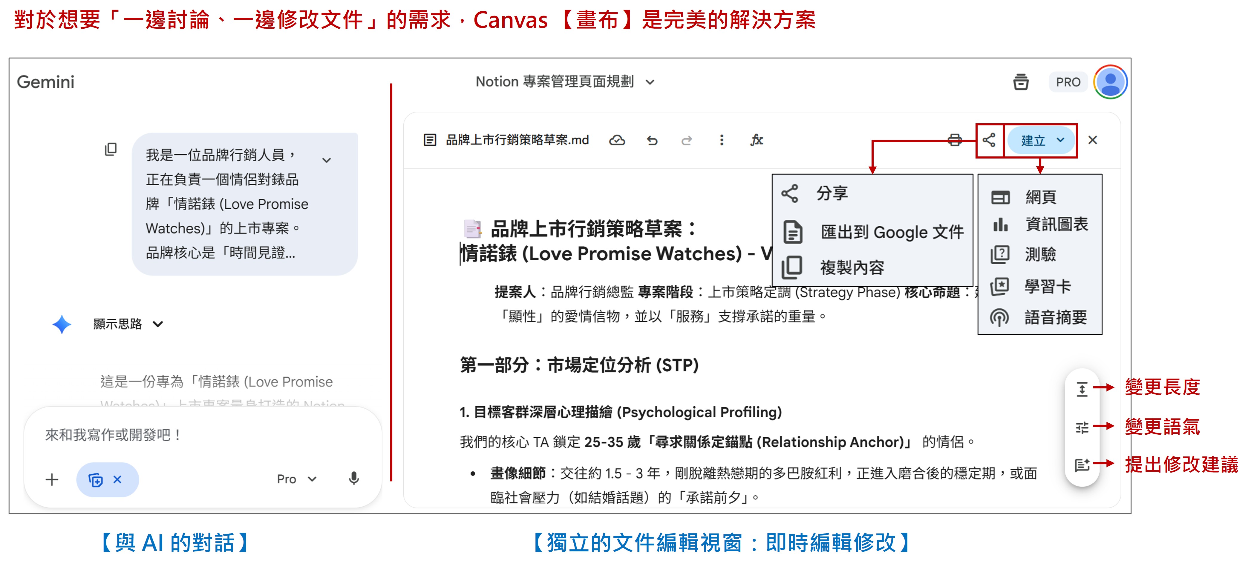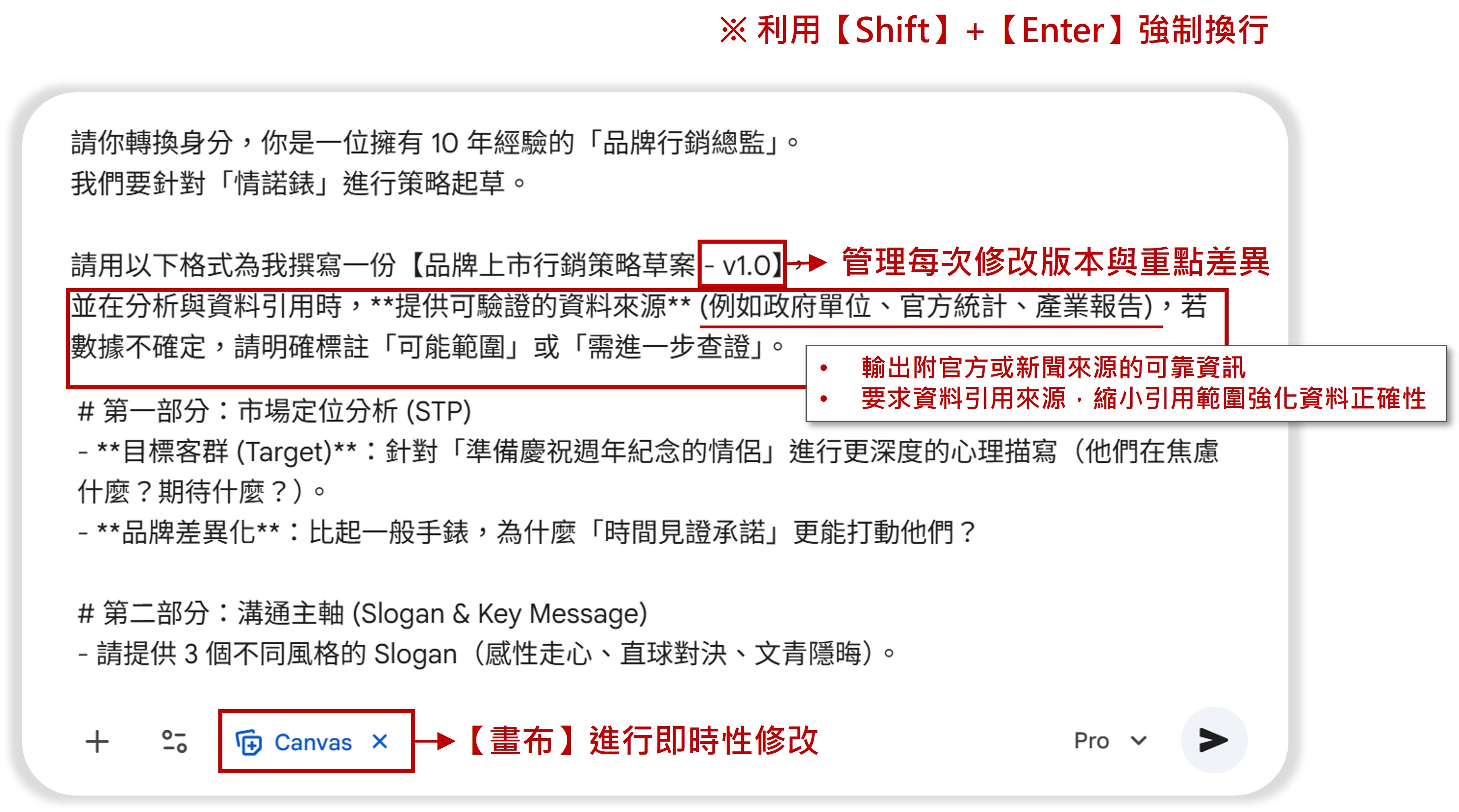 * 在 Canvas 裡問:「請扮演嚴格的投資人,針對這份策略提出 3 個最致命的弱點或挑戰。」