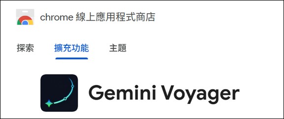 Chrome擴充連結:[Gemini Voyager](https://chromewebstore.google.com/detail/gemini-voyager/kjdpnimcnfinmilocccippmododhceol?utm_source=ext_app_menu)