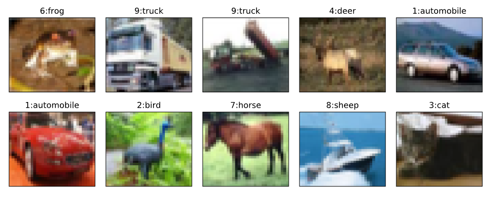 - **label**: The numbers 0 to 9 in the dataset correspond to the following categories: airplane(0), automobile(1), bird(2), cat(3), deer(4), dog(5), frog(6), horse(7), ship(8), truck(9).