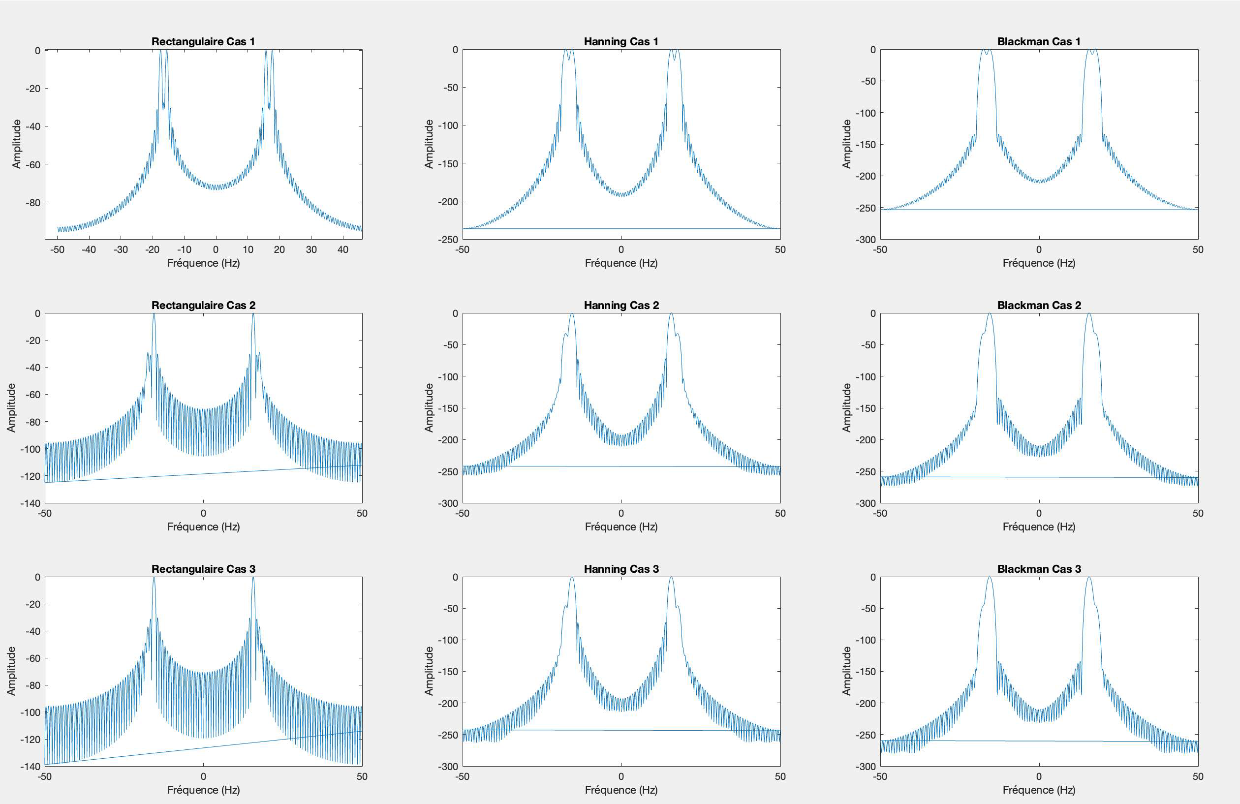 legend('Rectangulaire', 'Hanning', 'Blackman');