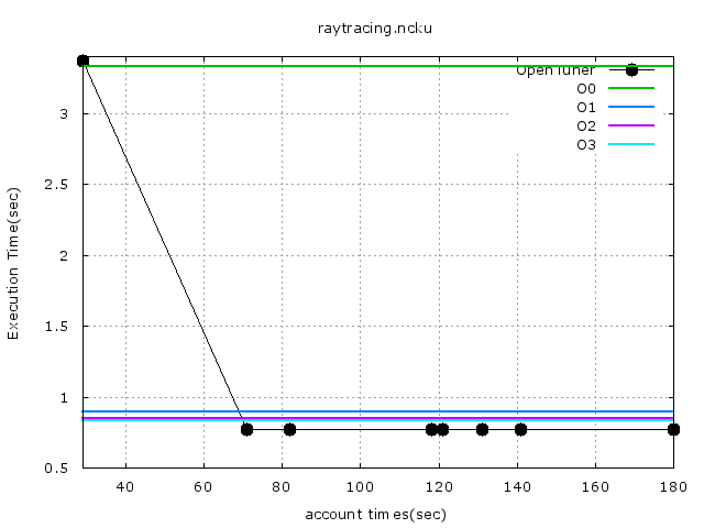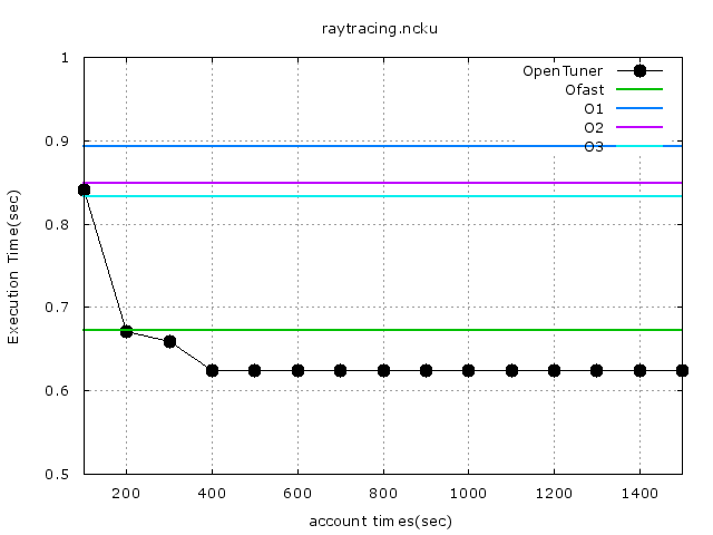 1. 延續之前 raytracing 的實驗,透過 OpenTuner,找到更快的編譯器選項來加速程式執行