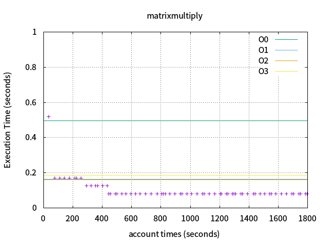 以下爲第二次的結果圖,已經找到超越Ofast的gccflag組合了: