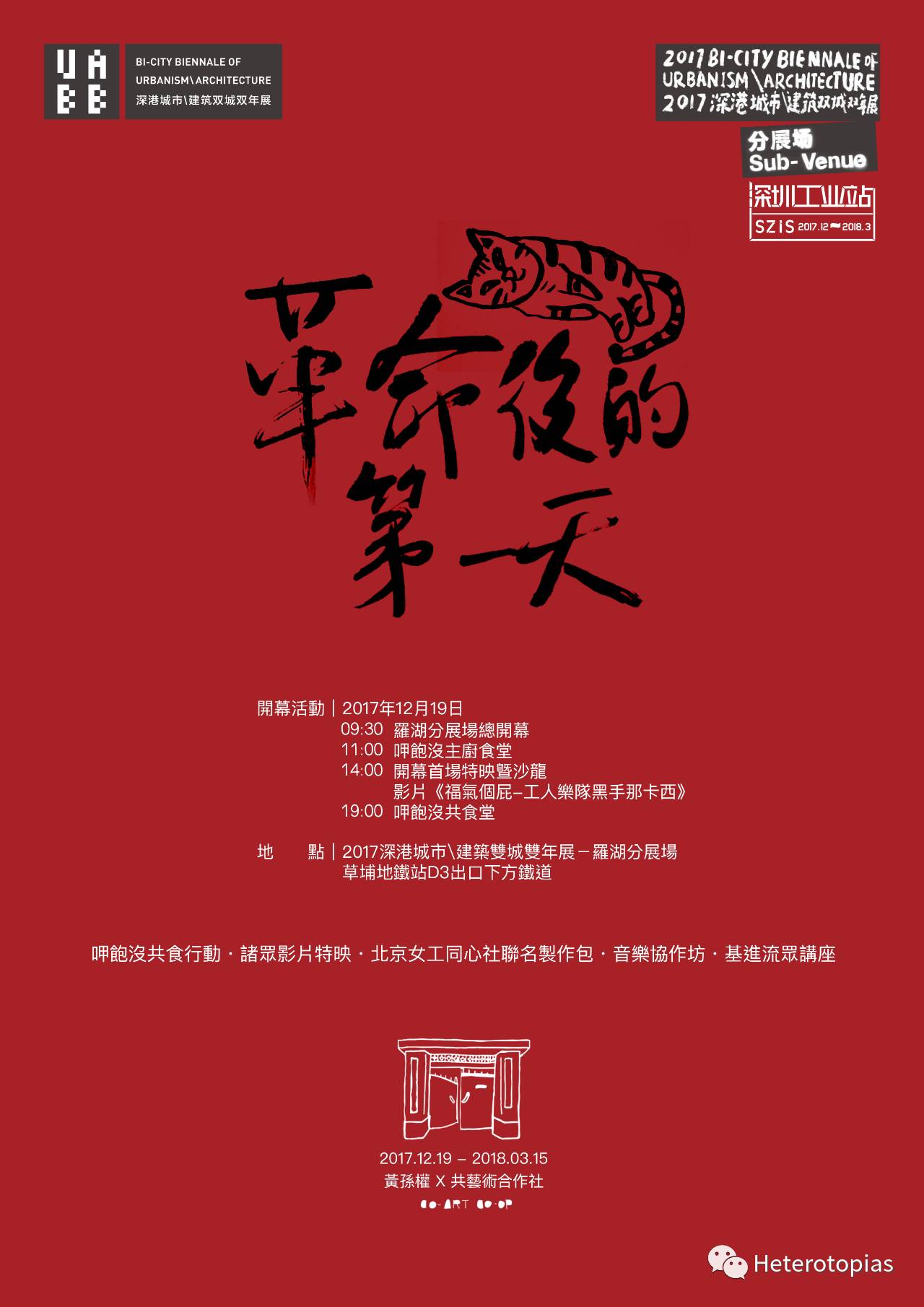 # 革命後的第一天 共藝術合作社@深雙羅湖區工業站  **已發文章** * [[革命后的第一天] UABB深双 ,共艺术合作社也来了](https://mp.weixin.qq.com/s?__biz=MzA4NDk4NjIzOA==&mid=2651461999&idx=1&sn=126924dffcebb582677f8e595e3e72e5&chksm=8420697eb357e06864ee5c75269437953ba7d395a2c16789d57bd38a892aa75d0edf64a41fac#rd) * [[革命後的第一天] 一天的生活](https://mp.weixin.qq.com/s?__biz=MzA4NDk4NjIzOA==&mid=2651462006&idx=1&sn=8ecdcbdee888024c3d8eaaca92abd1f2&chksm=84206967b357e071ace1c8c6a71fc4294a715a295af1c6d7d7229f568f968aaf02cd91554738#rd) * [[革命后的第一天] 共食桌巾与合作社布包的故事](https://mp.weixin.qq.com/s?__biz=MzA4NDk4NjIzOA==&mid=2651462020&idx=1&sn=b4af494d516a448644924cedc9b43873&chksm=84206995b357e083911410e0d70d9f1f8cda5b2336fe676feac9ef14c459d95263183291fc16#rd) * [[革命后的第一天] 三分钟早餐 三世纪垃圾](https://mp.weixin.qq.com/s?__biz=MzA4NDk4NjIzOA==&mid=2651462027&idx=1&sn=0233ce85845e509e9de1c572c8d65fb5&chksm=8420699ab357e08c76f882534d92293b54b6673269297afb9ad762293396ef92757755e6775a#rd) * [[革命後的第一天] 发过起床气,歌照唱舞照跳,书店没了还有推土机](https://mp.weixin.qq.com/s?__biz=MzA4NDk4NjIzOA==&mid=2651462040&idx=1&sn=40c0eeb800ae2260654f76fd1fea97d2&chksm=84206989b357e09fc58064c0b8c70146cf5cc9779d282151c8876d82109644c7d11fd5ab9e79#rd) * [[革命后的第一天] 你为了什么来到深圳?](https://mp.weixin.qq.com/s?__biz=MzA4NDk4NjIzOA==&mid=2651462051&idx=1&sn=672a9a5b067812ea5baaaa542cff1515&chksm=842069b2b357e0a4b89bdf59c079b7552acc7de7991b2c4a1d49642f52bf3d5293fe03401b1d#rd) **影片與圖片記錄** * [「為何你在這?」——清水河民歌唱作工作坊回顧](https://hackmd.io/s/SyUsoYOUf) **相關報導** * [别老在沟里,要上岸 ——清水河临时艺术社区开业第一周](https://mp.weixin.qq.com/s?__biz=MzU4OTM1OTk4MQ==&mid=2247483676&idx=1&sn=0a6eac5169617dc35b92dafd44ba9b13&chksm=fdcfff1ecab87608bec5d0f42e0636776bbefc14496b6a954cecf69dd11bc72041b592bba23b&mpshare=1&scene=1&srcid=0206h6yurz3JdKnefmfvLhzz&key=6e0affe7ecaa27473a5d7cff767e2fa6e006767ce6f585cd6cd9ebf585e32976451b767914498dc2169aa92133c4d991741d20d3433ad8567ba58e98a035cfdf77c6f6dea1f2c8d86cc68e460e5d8388&ascene=0&uin=Njc4NTE5MzYw&devicetype=iMac+MacBookPro12%2C1+OSX+OSX+10.13.3+build(17D47)&version=12010110&nettype=WIFI&lang=zh_TW&fontScale=100&pass_ticket=Rw3WfUY7o4msXQQaiO86%2BiLaVi5QQLhscsrQBpGuyAU6sC5Ks2zeYx69QPBlnx28) * [共艺术合作社 | 革命后的第一天](https://mp.weixin.qq.com/s?__biz=MzU4OTM1OTk4MQ==&mid=2247483832&idx=1&sn=0ad0030495ff1200da8ab7b038193a05&chksm=fdcfffbacab876acfb16b37598f3e2583a00be19b6ae2b91d6f5bf4ca2f3827569b0de6a8936&mpshare=1&scene=1&srcid=0206pirARFNlrtEsX1K1FaEJ&key=f81812bb080c9aaf2aa9cf2e5d3d8d0e56f2b9ed5fd793c84ddc8073be8426734f7fec0fa43603d4ab7ec15392223ee4f4131204f160a4d96d1780258d7a44a6b172462b8101a87f43346ea285aaffe6&ascene=0&uin=Njc4NTE5MzYw&devicetype=iMac+MacBookPro12%2C1+OSX+OSX+10.13.3+build(17D47)&version=12010110&nettype=WIFI&lang=zh_TW&fontScale=100&pass_ticket=Rw3WfUY7o4msXQQaiO86%2BiLaVi5QQLhscsrQBpGuyAU6sC5Ks2zeYx69QPBlnx28) * [唱自己的歌,和自己一起舞 | 艺术工作坊](https://mp.weixin.qq.com/s?__biz=MzU4OTM1OTk4MQ==&mid=2247483892&idx=1&sn=120e58169b797401f4c43b4e563aa422&chksm=fdcffff6cab876e0e6d367efdb48ad67f68b99057098ab49895563e89e6c69c5b0b7bce8bb47&mpshare=1&scene=1&srcid=02067d4gwx9m9VTvzGBYeSvl&key=69917ccc102c60da1ec60f6fd07486a72d8f531d590dd9be67fc42cc446491e8088162dc7c49f189cb8bb7ee169abe6c80bd5e780fd98ef57cfa6eb5330eea9a5c1dea8935f7a0811923c803701f282d&ascene=0&uin=Njc4NTE5MzYw&devicetype=iMac+MacBookPro12%2C1+OSX+OSX+10.13.3+build(17D47)&version=12010110&nettype=WIFI&lang=zh_TW&fontScale=100&pass_ticket=Rw3WfUY7o4msXQQaiO86%2BiLaVi5QQLhscsrQBpGuyAU6sC5Ks2zeYx69QPBlnx28) * [諸眾之貌 紀錄片放映|免費放映](https://mp.weixin.qq.com/s?__biz=MzU4OTM1OTk4MQ==&mid=2247483916&idx=1&sn=02bb6061b116c6f48f132db5c5b44678&chksm=fdcffc0ecab87518af2a168f08f2b1c196347e8f3f4a9b62480477438a80ef50da370237d654&mpshare=1&scene=1&srcid=0206tR6SIrVx70LGpMPHXgcv&key=6e0affe7ecaa2747c7e91c51ec7b251012eeb049fcaf43cb40699adc0f84d911facf6675ee30badafb964a53033fa0715ab64413556dbab9f36de1df5a25a55bbe9bc8571e92d7a7a6ca5c56d80c4b72&ascene=0&uin=Njc4NTE5MzYw&devicetype=iMac+MacBookPro12%2C1+OSX+OSX+10.13.3+build(17D47)&version=12010110&nettype=WIFI&lang=zh_TW&fontScale=100&pass_ticket=Rw3WfUY7o4msXQQaiO86%2BiLaVi5QQLhscsrQBpGuyAU6sC5Ks2zeYx69QPBlnx28)