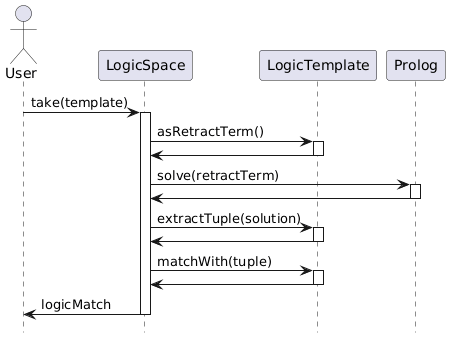 Di seguito sono rappresentati dei diagrammi di sequenza che mostrano l'uso dei template da parte dello spazio di tuple nel caso di *read* e *take*.