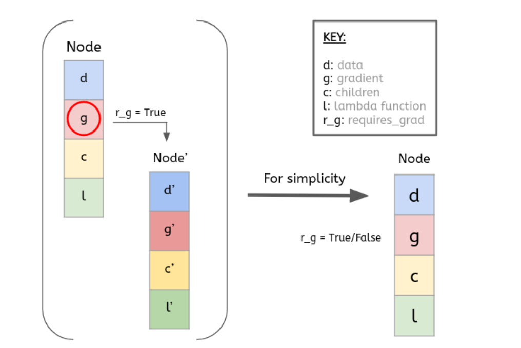 - And each `grad` will be a `Node` whose value is a 0-scalar/tensor depending on `data` type.